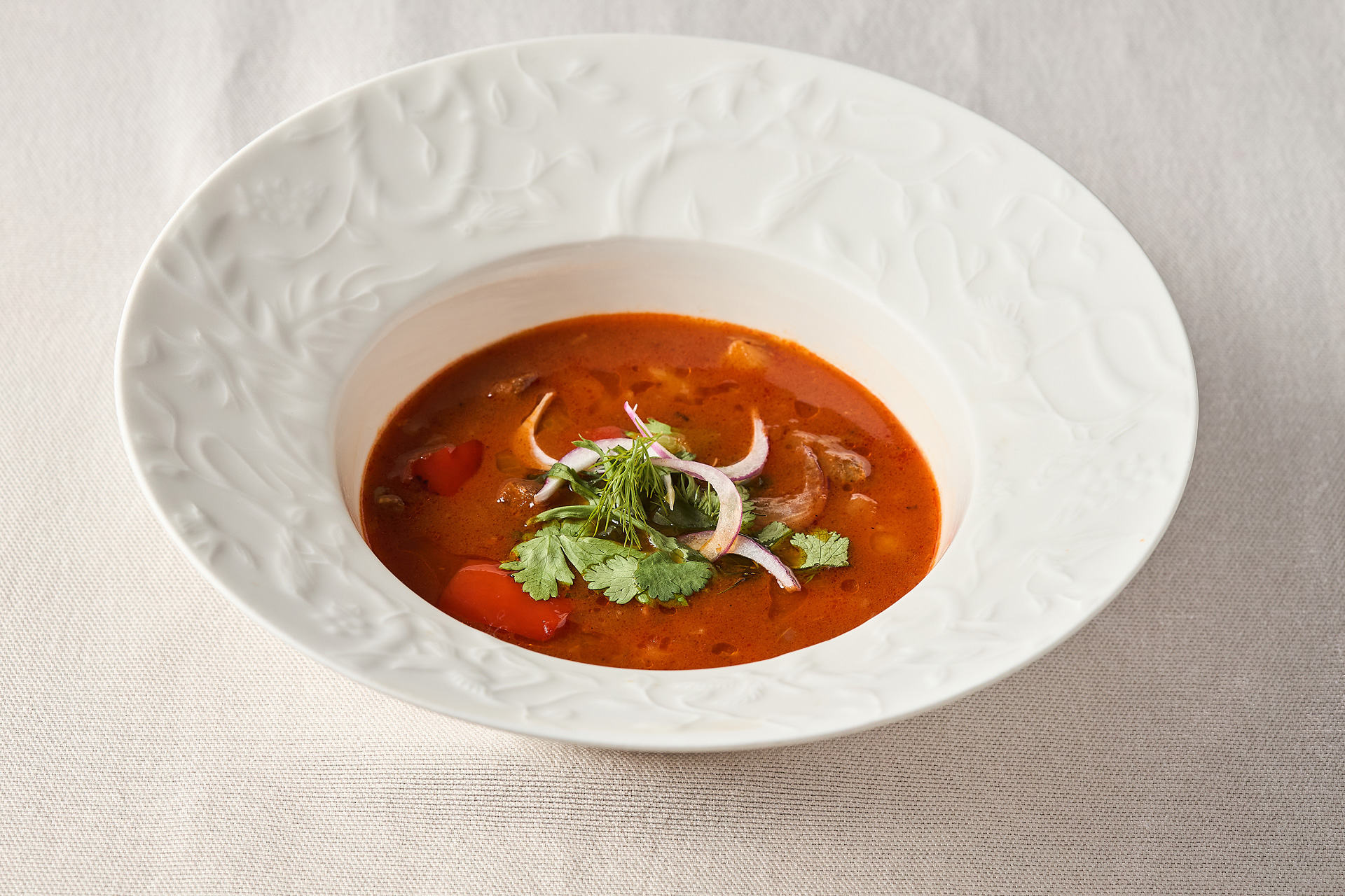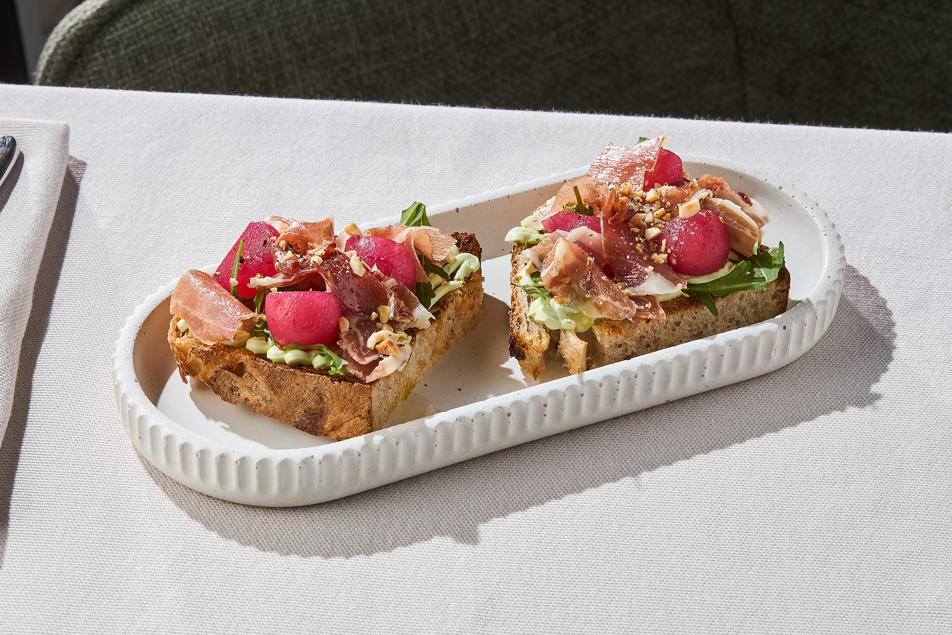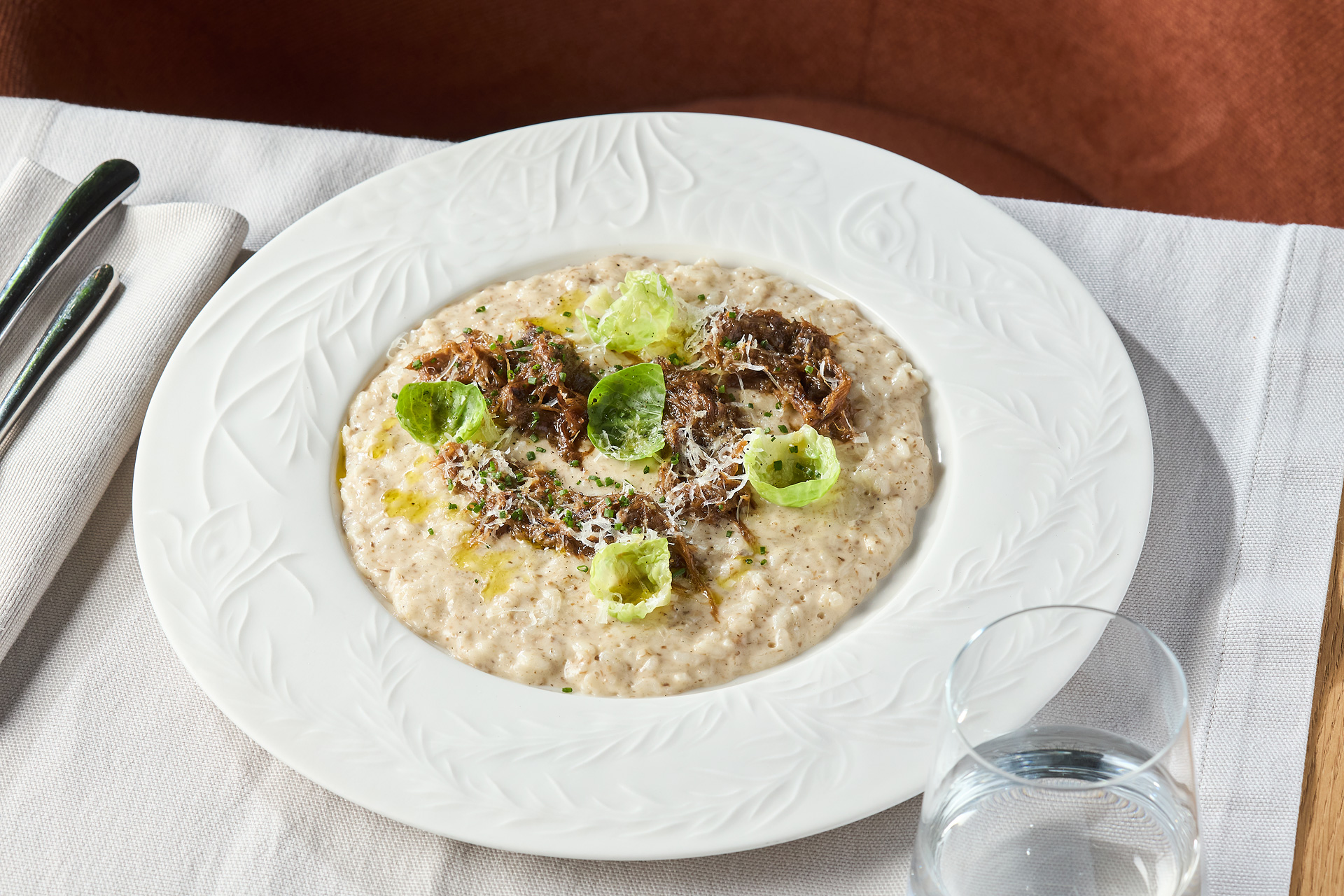 Утиная ножка конфи с кремом из сельдерея и чатни из груши